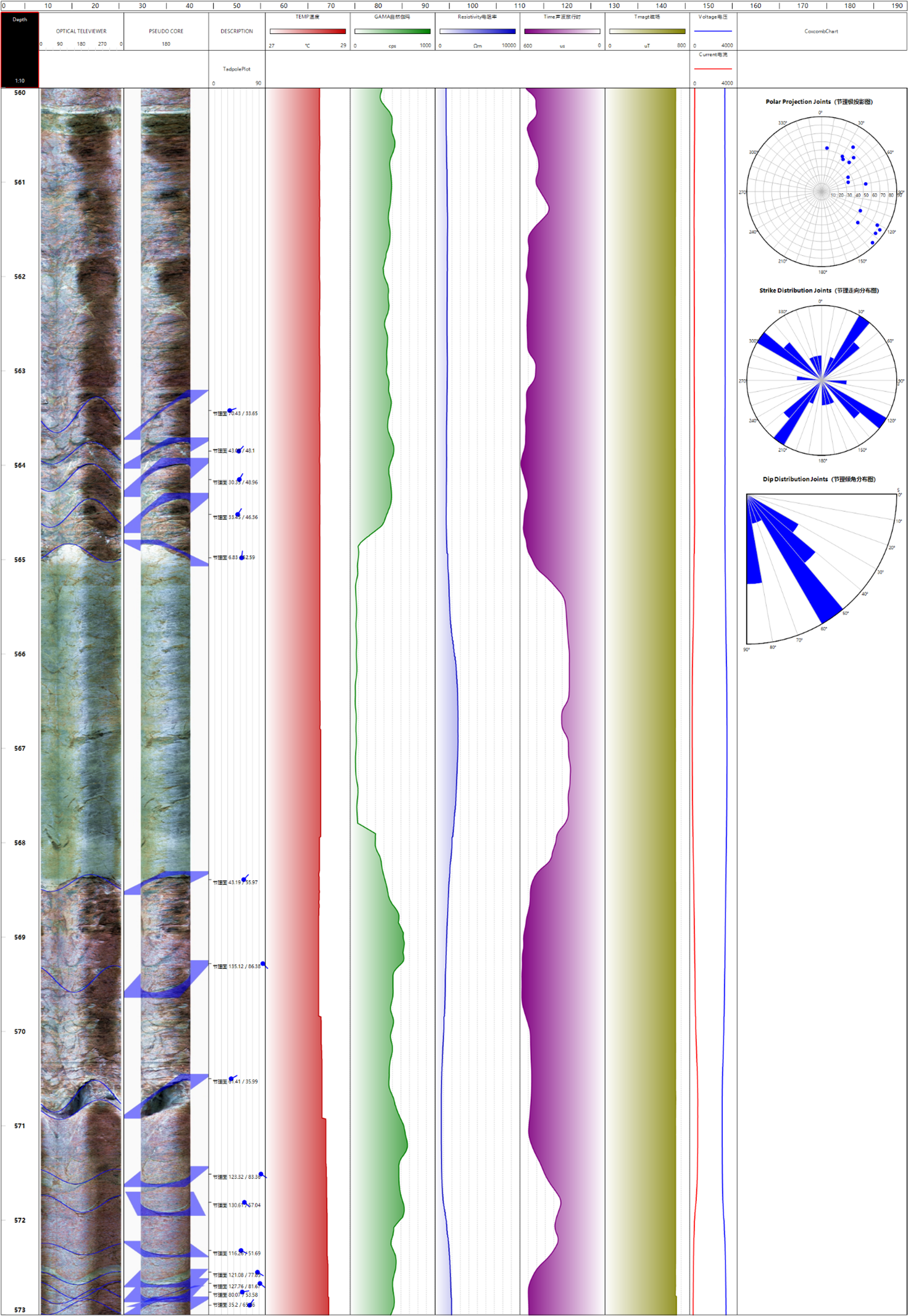 Borehole fracture and joint identification results